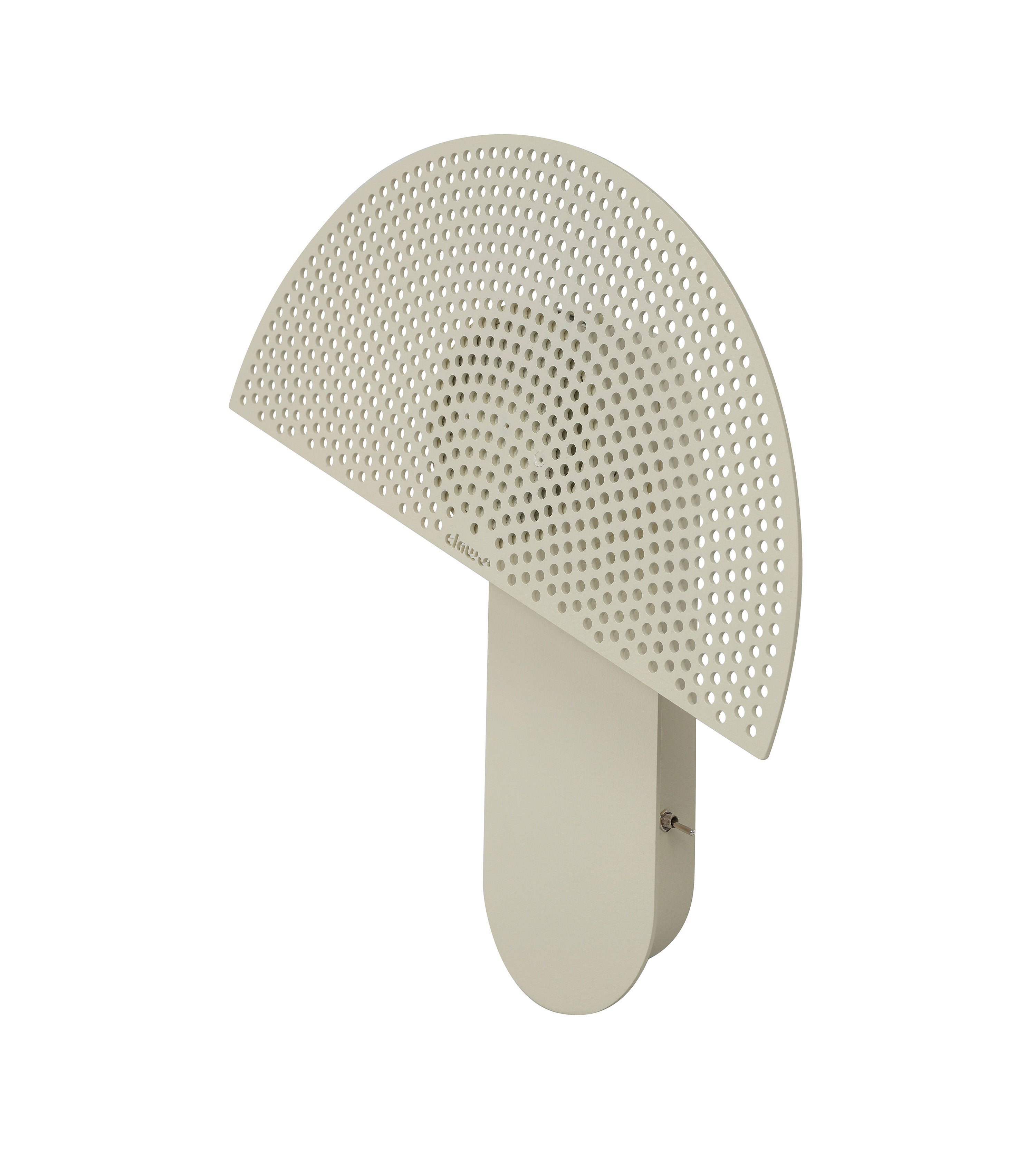 Orbit is a wall lamp which makes it possible to change the direction of the light with a single move. Orbit’s simple geometric aesthetic offers many looks with a sculptural feeling whether it is on or off. The perforated radial pattern on the rotating head produces a playful effect by interacting with daylight and casting shadows on the surfaces. Orbit fits in a variety of settings with its functional, rotating light source that produces warm and soft directional illumination and its whimsical look.
