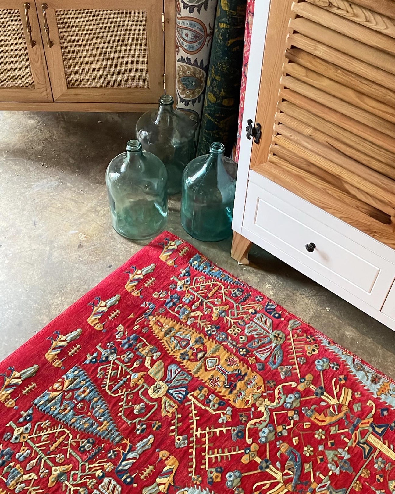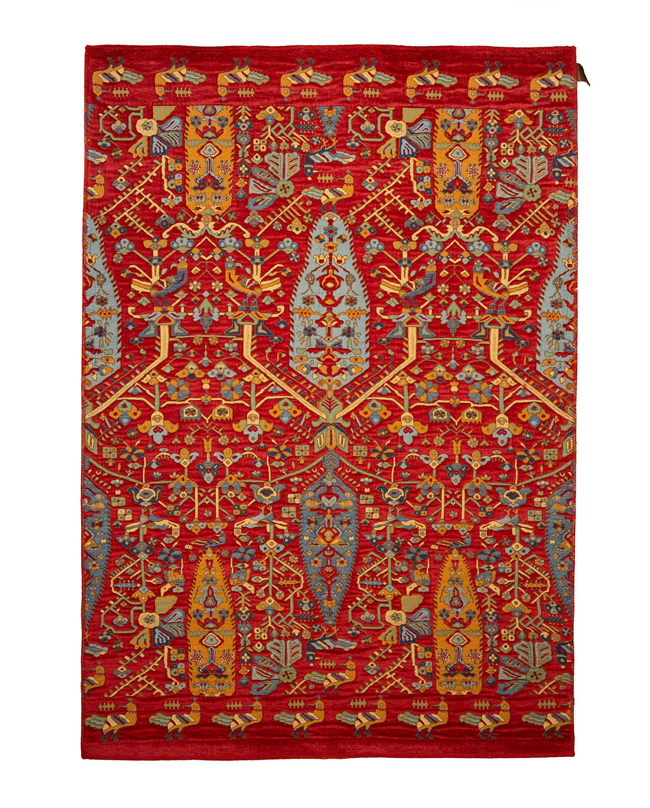 Kırmızı, siyah ve yeşil renk varyantları olan Gabbeh halı İranın Fars bölgesinde Ghashghai göçebelerinden ve o yörede dokunan Gabbeh halılarından ilham alınarak tasarlanmıştır. Bu göçebelerin de sıklıkla kullandığı kuş, hayat ağacı ve çiçek motiflerini ele alarak farklı bir yorum katılarak dokunan Feyz Gabbeh halı kullanılan renk ve motifleriyle evlerinizde sanat eseri olmaya aday.